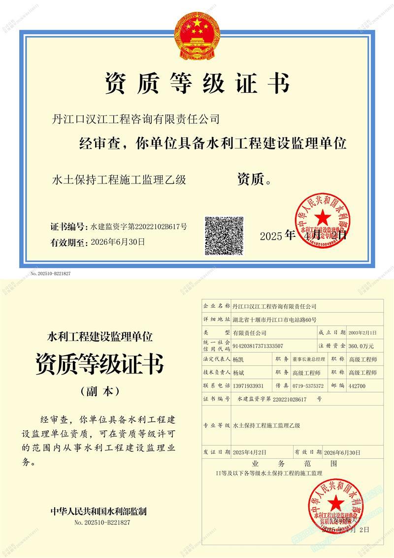 (原漢江綜合開發(fā)公司水利水電監(jiān)理中心)成立于 1989年3月,1993年6月經水利部審批成為首批注冊監(jiān)理單位 (隸屬于長江水利委員會), 注冊資本 360萬元 。公司位于湖北省十堰市丹江口市電站路。公司目前擁有水利部頒發(fā)的 水利工程施工監(jiān)理甲級 、 水土保持工程施工監(jiān)理 乙 級 資質 ;住建部頒發(fā)的 房屋建筑 、 市政公用工程監(jiān)理 乙 級資質 。 可獨立承擔 各類水利水電工程 、 一般工業(yè)與民用建筑工程監(jiān)理 , 土地整治 , 招標代理 、 技術咨詢 等業(yè)務。公司實行董事會領導下的總經理負責制,下設辦公室、經營部、財務部、工程技術部等職能部門。……